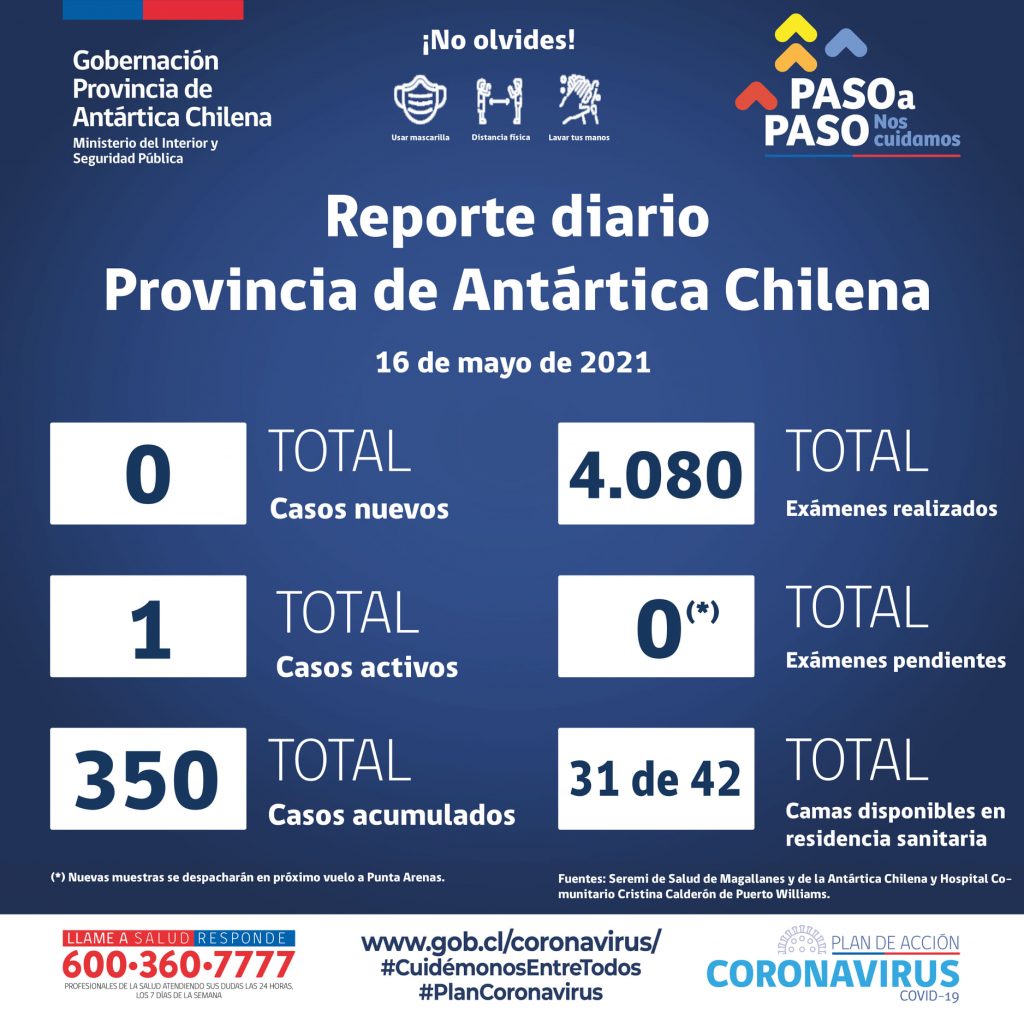 Situación Coronavirus en Provincia Antártica Chilena: 10 al 16 de mayo de 2021